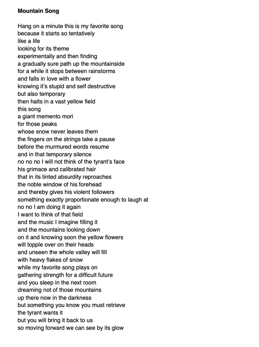 And a new poem below that inexplicably appeared in a magazine about skiing called Hard Pack, which is actually very beautiful and full of amazing essays and photos. They asked if I had any poems about skiing and I said no, but I have some poems about snow and mountains, which I guess are some of the required elements.
